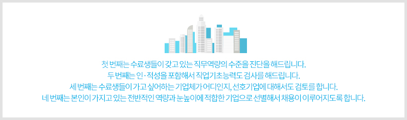 ‘KH정보교육원의 수료생들에게 어떤 것을 해드릴 수 있을까’ 사실 저희는 오랫동안 고민을 했습니다. 그 결과 저희는 경력개발 경로 보통 CDP (Career Development Plan)라고 하는데, CDP를 저희가 그려드리는 활동들을 지원해드리고자 합니다. 현재 협회에서 약 150여 개정도의 양질의 기업체들하고 협약을 맺고 있습니다. 이 기업체들을 수료생들에게 홍보하고 채용을 연계하는 일련의 활동인 것입니다. 이 프로그램의 장점을 네 가지 정도를 구체적으로 말씀드릴 수 있는데요.
